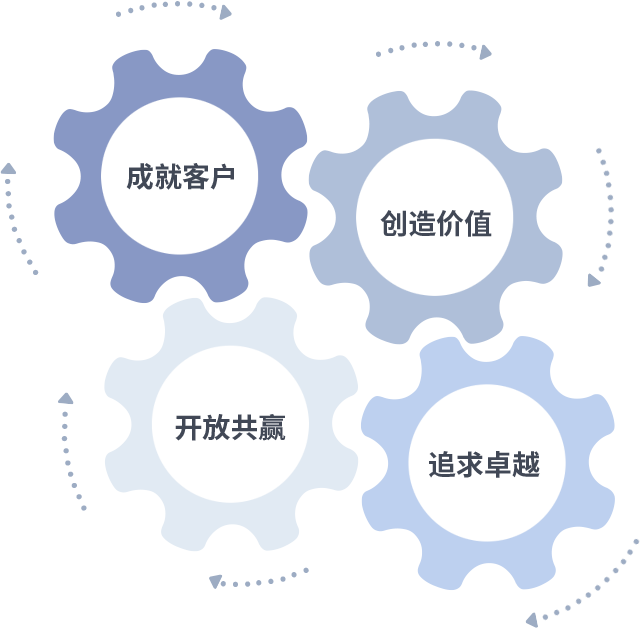 成就客户是一切决策的出发点,创造价值是衡量所有工作的标准,追求卓越是乐玩国际做事做人的态度,开放共赢是乐玩国际的格局也是最终的结果。价值观的齿轮环环相扣,推动着组织里的每个人不断向前。